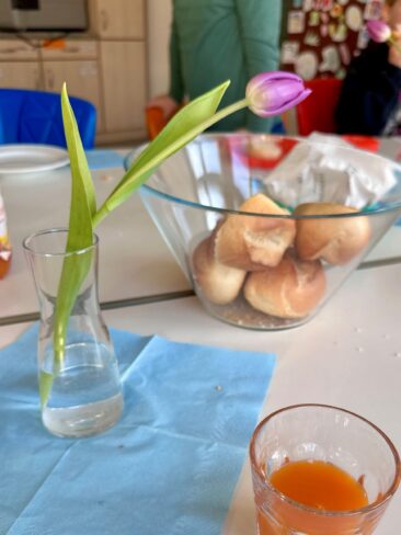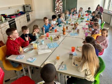 Am Donnerstag, den 12. März, hat die Pinguinklasse (1) im Religionsunterricht ein gemeinsames Frühstück veranstaltet. Dabei stand die Freude an der Tischgemeinschaft im Mittelpunkt. Nach einem gemeinsamen Tischgebet konnte das Frühstück beginnen. Die Kinder hatten viele leckere Dinge mitgebracht, sodass ein buntes und reichhaltiges Buffet entstand. Gemeinsam wurde gegessen, gelacht und erzählt – und natürlich sind am Ende alle satt geworden. Für die Kinder war es ein schönes Gemeinschaftserlebnis, an das sich die Pinguinklasse sicher noch lange gern erinnern.